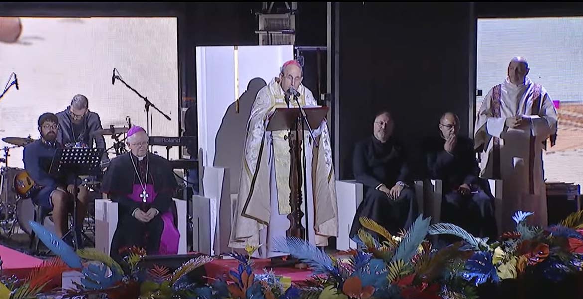 El delegado pontificio preside una vigilia de oración en el Monte del Gozo al final de una tarde en la que la música fue la gran protagonista