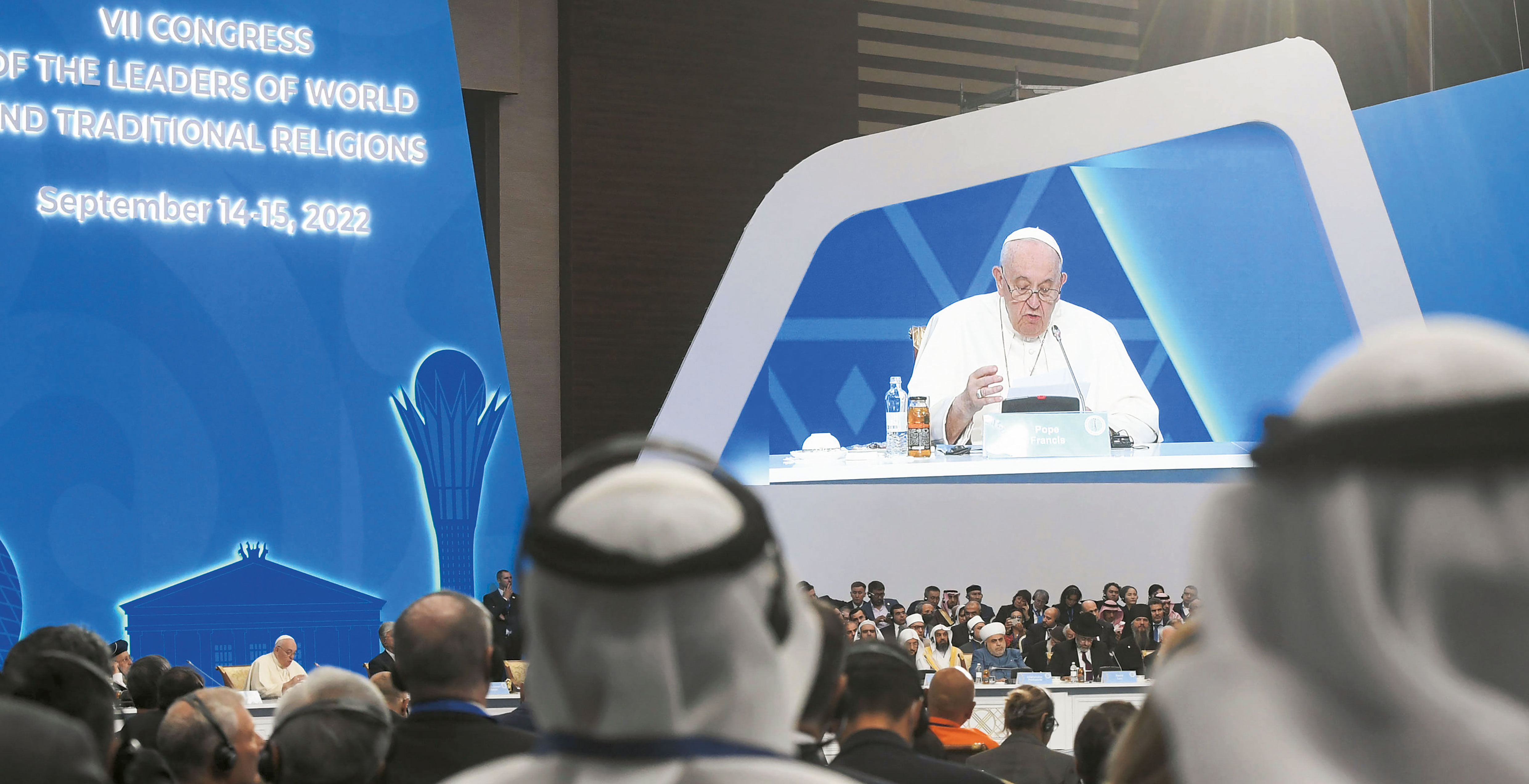 Fue este mandatario quien convocó en septiembre de 2003 el primer congreso interreligioso, una iniciativa singular que ha reunido cada tres años a varios centenares de dirigentes religiosos del mundo entero: cristianos, musulmanes, judíos, budistas, taoístas, hindúes, shiks y seguidores de otras religiones tradicionales. Este VII Congreso se tornó en excepcional por la actual situación de guerra en Europa y por la presencia del papa Francisco. La Santa Sede, en efecto, había participado en todas sus convocatorias, pero el papa Bergoglio quiso solemnizar la de 2022 con su presencia.