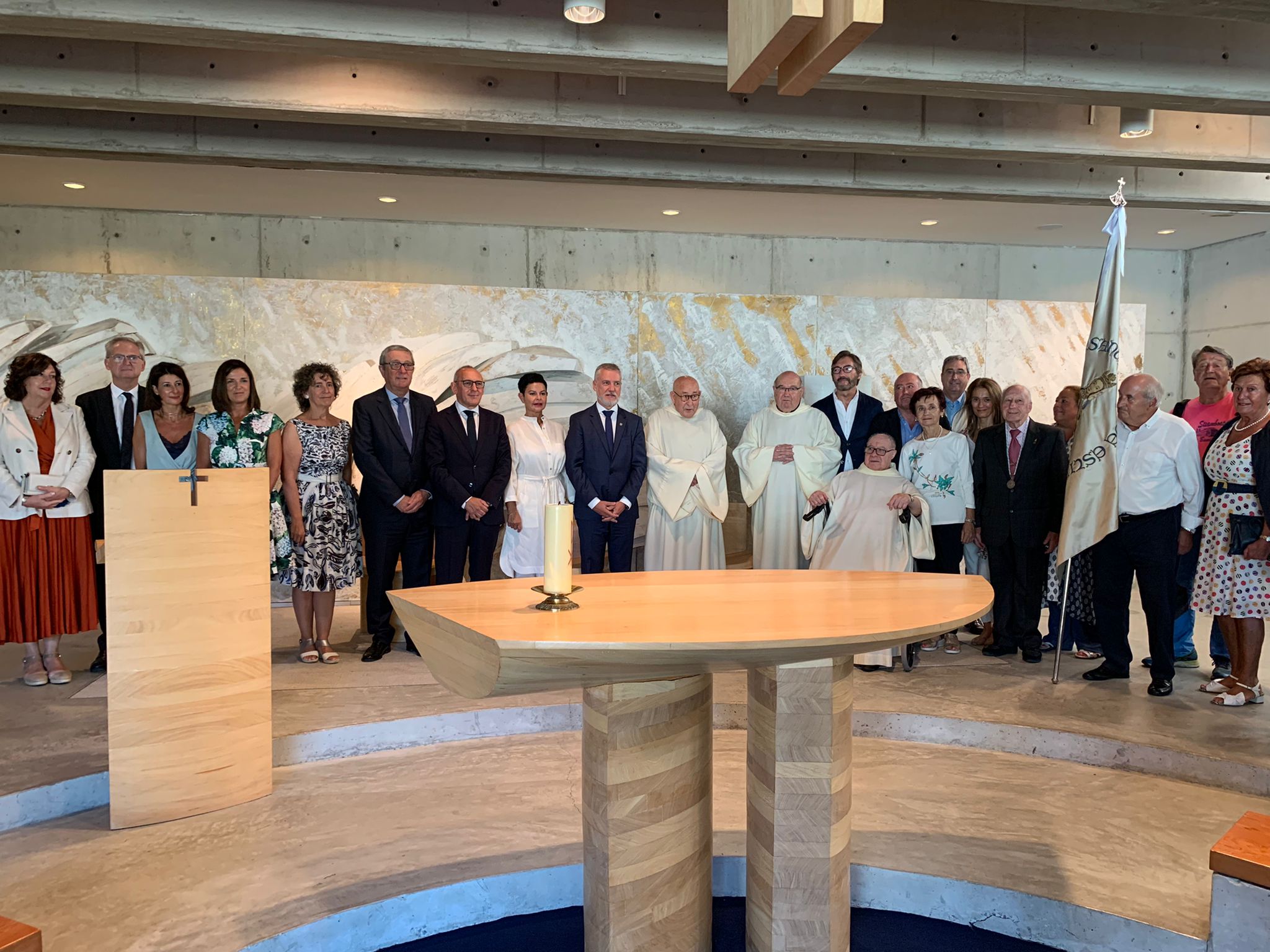 Al día siguiente, en la fiesta grande, numerosos fieles volvieron a congregarse y arropar a la pequeña comunidad para decirles “agur, bihotz bihotzetik”. En la misa vespertina, presidida por el obispo, Juan Carlos Elizalde, acompañado, entre otros, por Josep María Soler, abad de Montserrat y visitador de la Provincia Hispánica de los benedictinos, también hubo una representación del clero, religiosas, laicos, agentes de pastoral, cofradías y miembros de la sociedad civil. Durante la celebración no faltó la tradicional ofrenda de “las estíbaliz”, mujeres que ostentan ese nombre. En su homilía, Elizalde hizo una llamada a la esperanza, al “amén”, a no tener miedo al futuro, refiriéndose a la nueva vida de los monjes en Lazkao y al futuro del propio santuario.