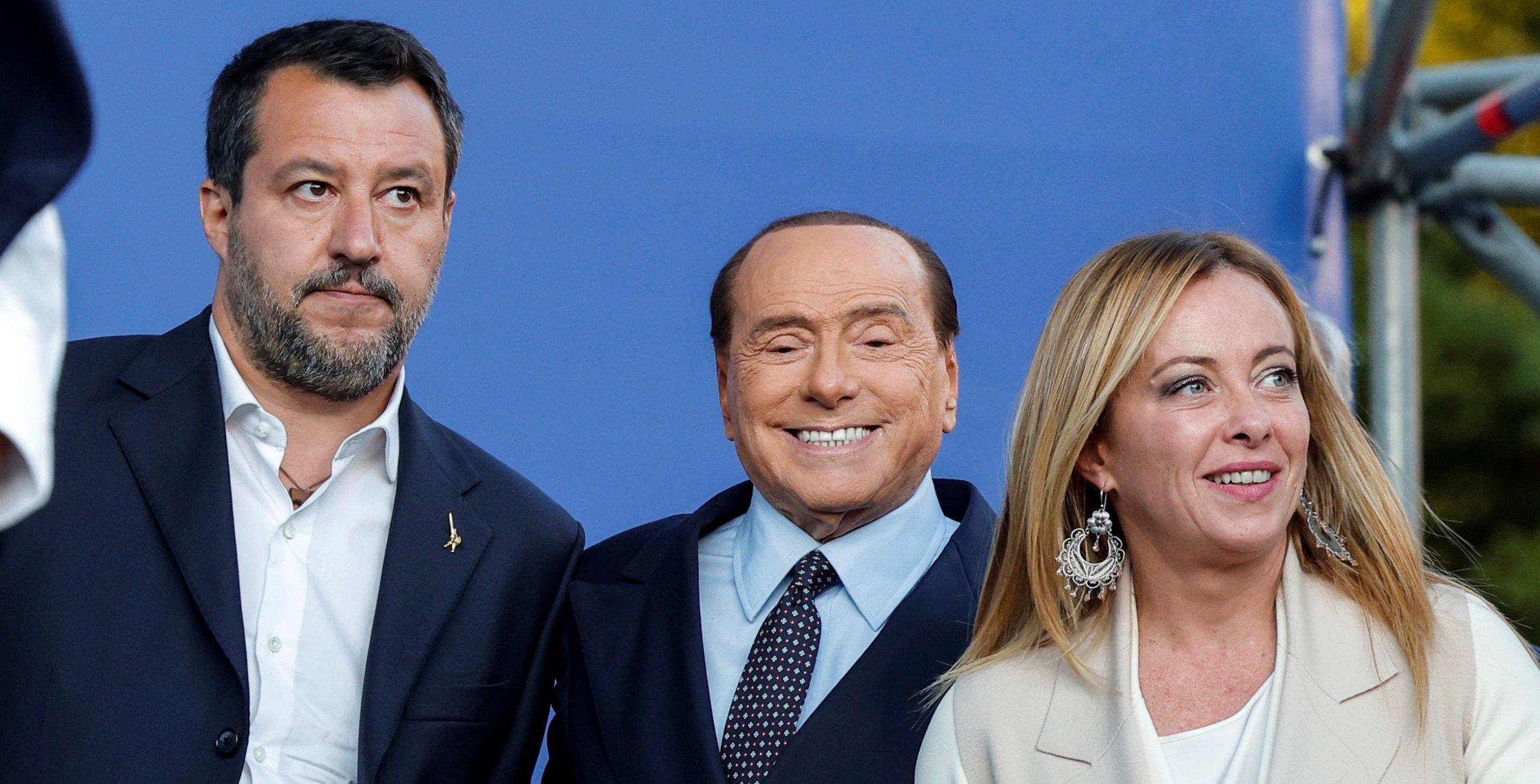 Rome (Italy), 22/09/2022.- (L-R) Federal secretary of Italian party Lega Nord Matteo Salvini, President of Italian party 'Forza Italia' Silvio Berlusconi and leader of Italian party Fratelli d'ÄôItalia (Brothers of Italy) Giorgia Meloni attend the center-right closing rally of the campaign for the general elections at Piazza del Popolo, in Rome, Italy, 22 September 2022. Italy will hold its general snap elections on 25 September 2022 to elect a new Prime Minister. (Elecciones, Italia, Roma) EFE/EPA/GIUSEPPE LAMI