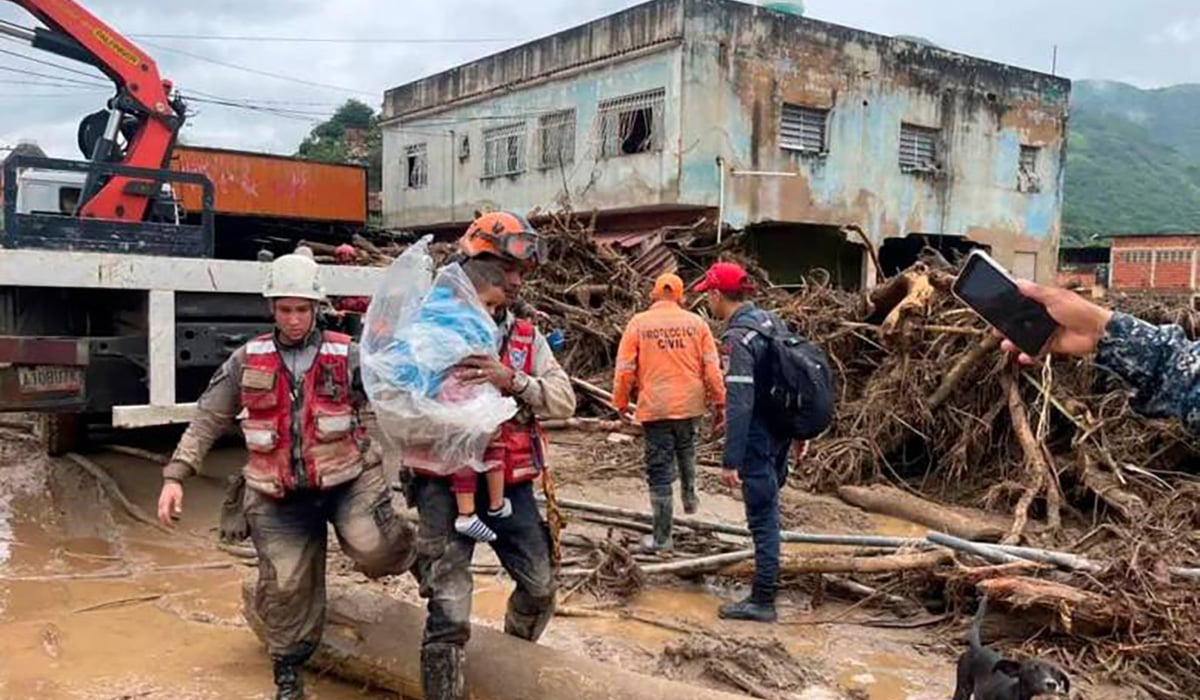 Las fuertes lluvias en las últimas horas en Venezuela afectaron al pueblo de Tejerías, 50 km de Caracas, con un saldo de 36 muertos y más 56 personas desaparecidas. La crecida de una quebrada arrasó todo a su paso.
