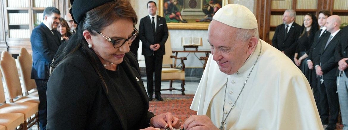 El papa Francisco ha recibido hoy en el Vaticano a la presidenta de la República de Honduras, Iris Xiomara Castro. Tal como ha informado la Oficina de Prensa de la Santa Sede, este encuentro, además de reforzar los lazos entre Honduras y el estado Vaticano, ha servido a ambos para reflexionar acerca de los efectos del cambio climático, y la lucha contra la pobreza.