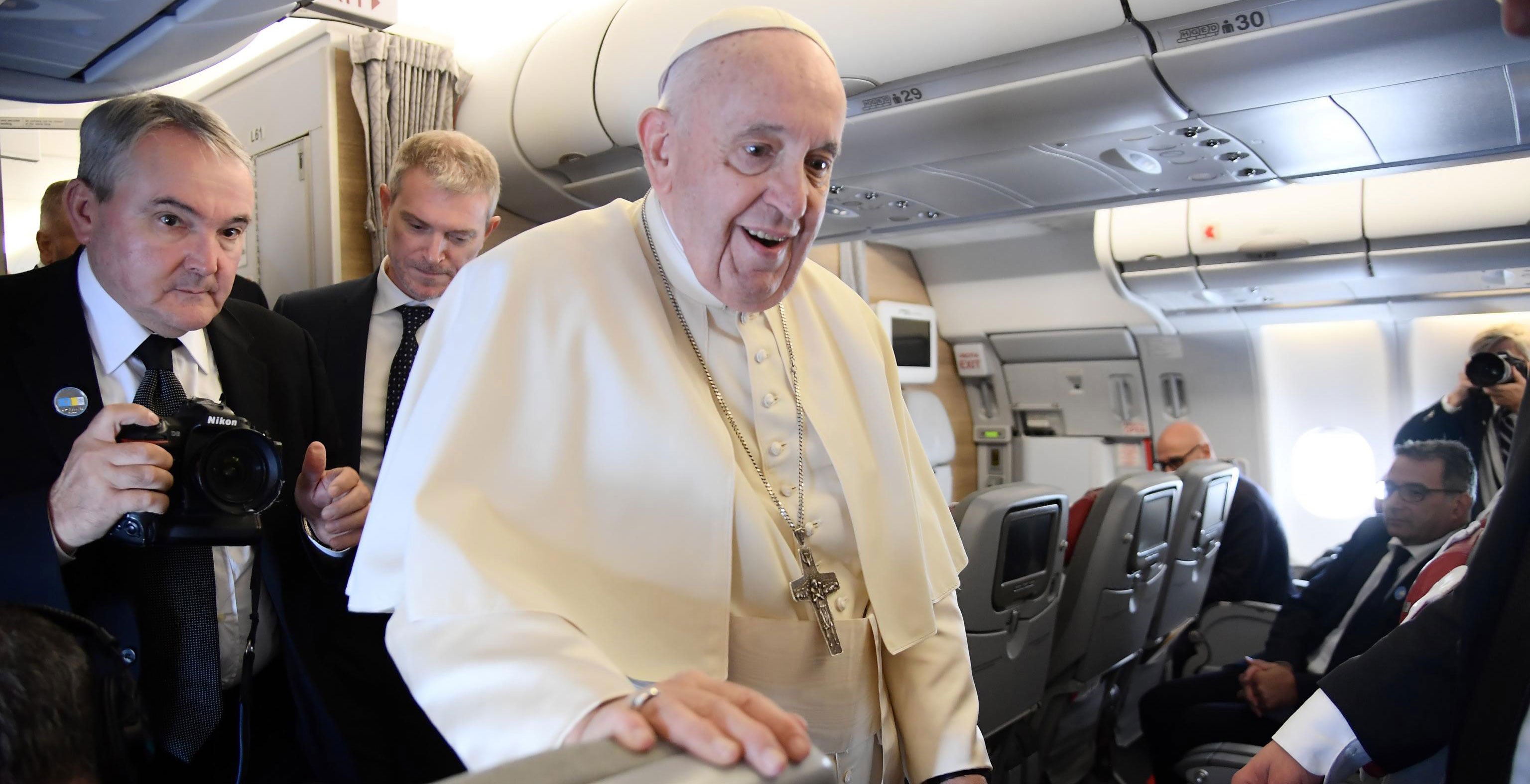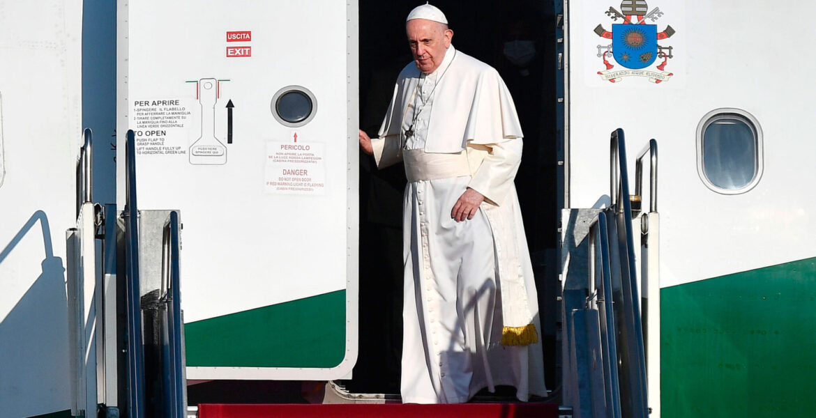 Esta mañana el avión papal ha despegado a las nueve y media de la mañana del aeropuerto romano de Fiumicino y, después de un vuelo de cinco horas y media aterrizaremos en la base militar de Shakir de la localidad de Awali sede del Palacio Real y de otras monumentales construcciones oficiales del Reino. Con Francisco y su séquito volamos 60 periodistas a los que, uno por uno, saludará personalmente.