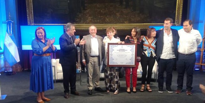 La titular de Cámara Baja pidió a la familia que sean ellos los encargados de entregar la distinción. Así lo hicieron Lita, su esposa desde hace 60 años, y sus hijos: Ana, Gabriela, Ignacio, Paula y Pablo.