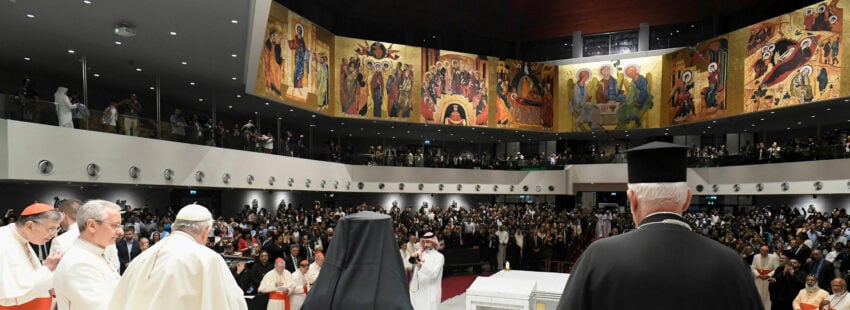 Otro argumento que el Papa abordó fue el de las migraciones, destacando que “el Reino de Bahrein ostenta una de las tasas más elevadas del mundo; cerca de la mitad de la población residente es extranjera y trabaja de modo notable por el desarrollo de un país en el que, aun habiendo dejado la propia patria, se siente en su casa. Pero no se puede olvidar que en este tiempo el trabajo es aún muy escaso y hay demasiado trabajo deshumanizador”.