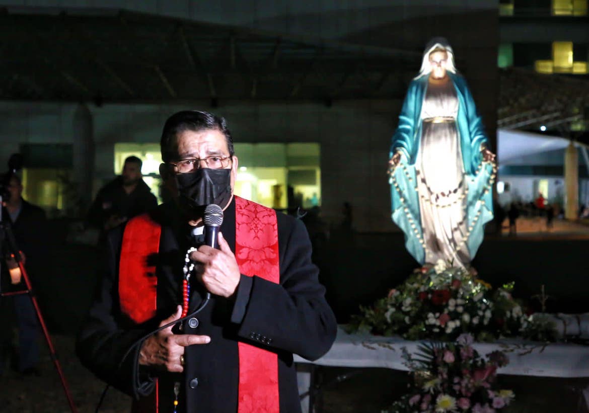 El arzobispo de Durango, Faustino Armendáriz, dirigió la noche del 26 de noviembre un rosario por los enfermos, en el exterior de un hospital en Durango, México, acompañado de feligreses de esa Iglesia particular.