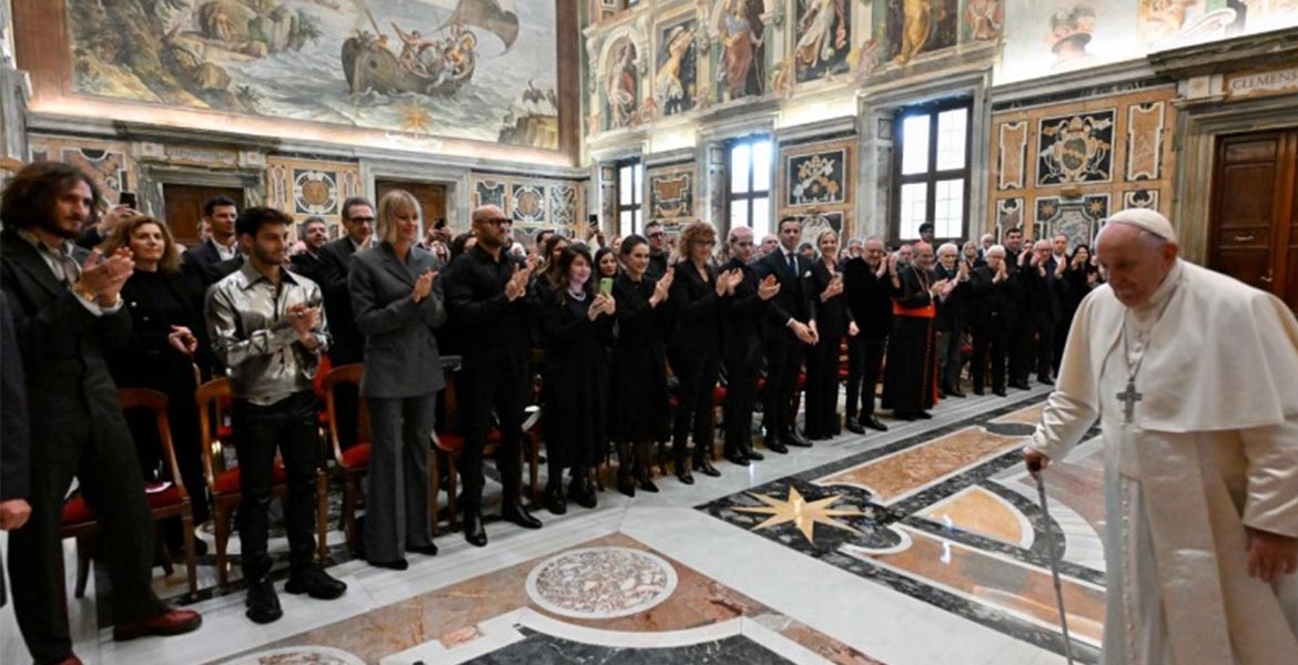 Francisco destacó que “el tiempo de Adviento no es de resignación o tristeza, sino de esperanza y alegría, un mensaje que hay que interiorizar y comunicar” como lo hacen los cantantes. “Con tu canto, contribuyes a difundir este mensaje de amor y vida, llegando a tantos corazones y ampliando el perímetro de la fraternidad. Así actúa Dios en la historia humana, incluso en escenarios dolorosos y desoladores: con misericordia nos llama a todos, se sirve de nuestros talentos y también de nuestras limitaciones, y quiere salvar hoy a la humanidad. Como en Navidad, ¡todos los días!”, señaló a los artistas.