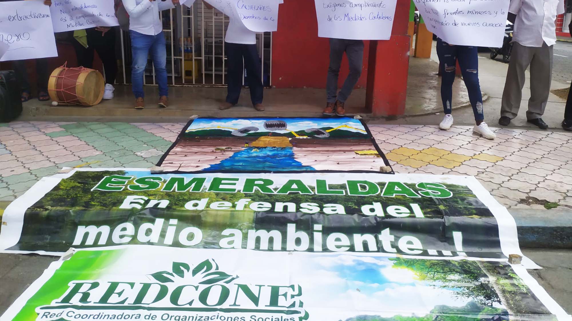 Organizaciones sociales defensoras de derechos humanos, líderes comunitarios y agentes pastorales de Cáritas Esmeraldas realizaron un plantón en el Consejo de la Judicatura de los cantones Eloy Alfaro y San Lorenzo en protesta contra actividades mineras en esta zona del occidente del país.