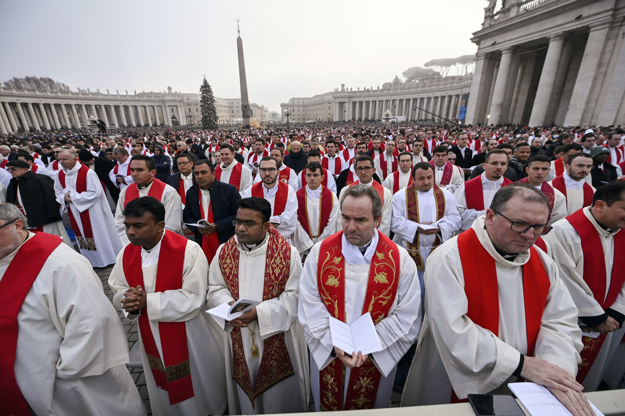 Vatican City (Vatican City State (holy See)), 05/01/2023.- Priests and faithfuls during the funeral of Pope Emeritus Benedict XVI in Saint Peter's Square, Vatican City, 05 January 2023. Former Pope Benedict XVI died on 31 December 2022 at his Vatican residence, at the age 95. (Papa) EFE/EPA/Riccardo Antimiani