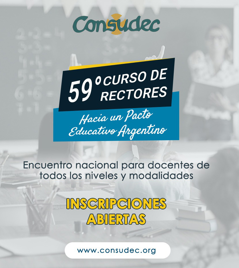 El Consejo de Educación Católica (CONSUDEC), organismo que depende de la Comisión Episcopal de Educación Católica de la Conferencia Episcopal Argentina, se encuentra preparando el 59° Curso de Rectores, bajo la consigna “Hacia un pacto educativo argentino”.