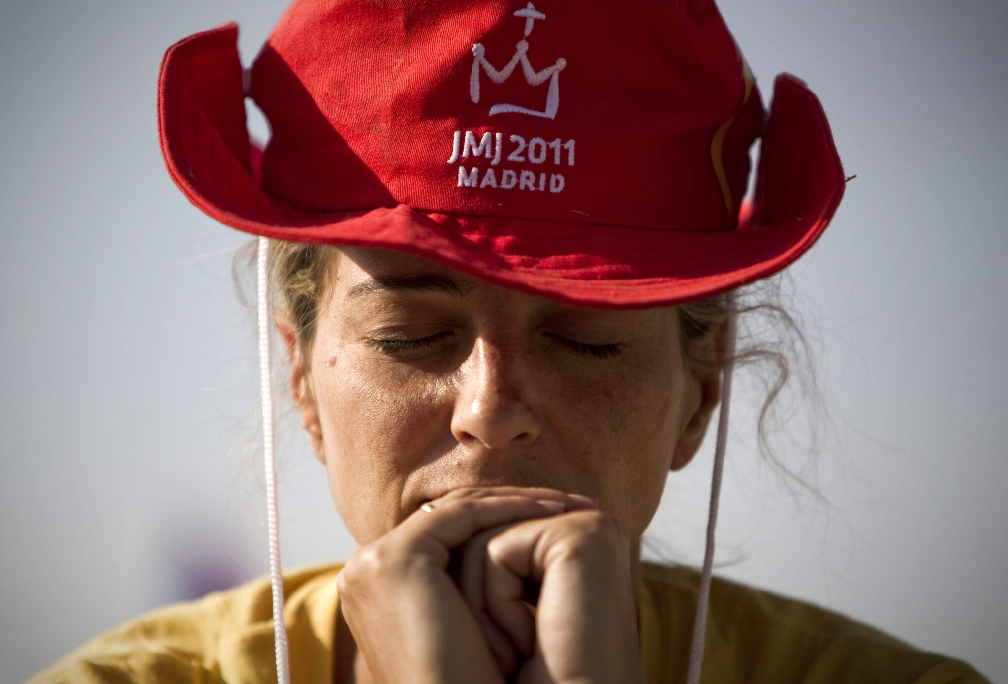 JMJ103. MADRID, 21/08/2011.- Una joven reza durante la misa de clausura de la XXVI Jornada Mundial de la Juventud que el papa Benedicto XVI oficia hoy en el aeródromo de Cuatro Vientos, en su último día de estancia en Madrid. EFE/Emilio Naranjo