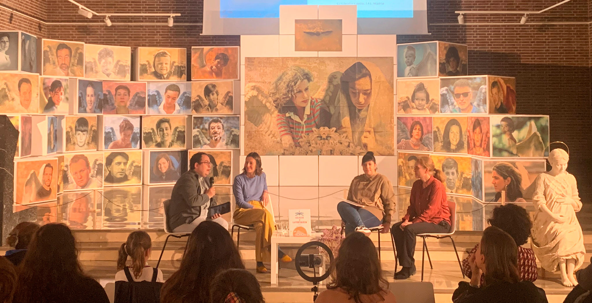A Landeras le ha acompañado Sara González -Babanguda-, que comparte protagonismo con Alex Rooney en las ilustraciones de la obra, y Raquel Fernández, responsable de la editorial, en una mesa redonda guiada por el sacerdote salesiano Mateo González Alonso.
