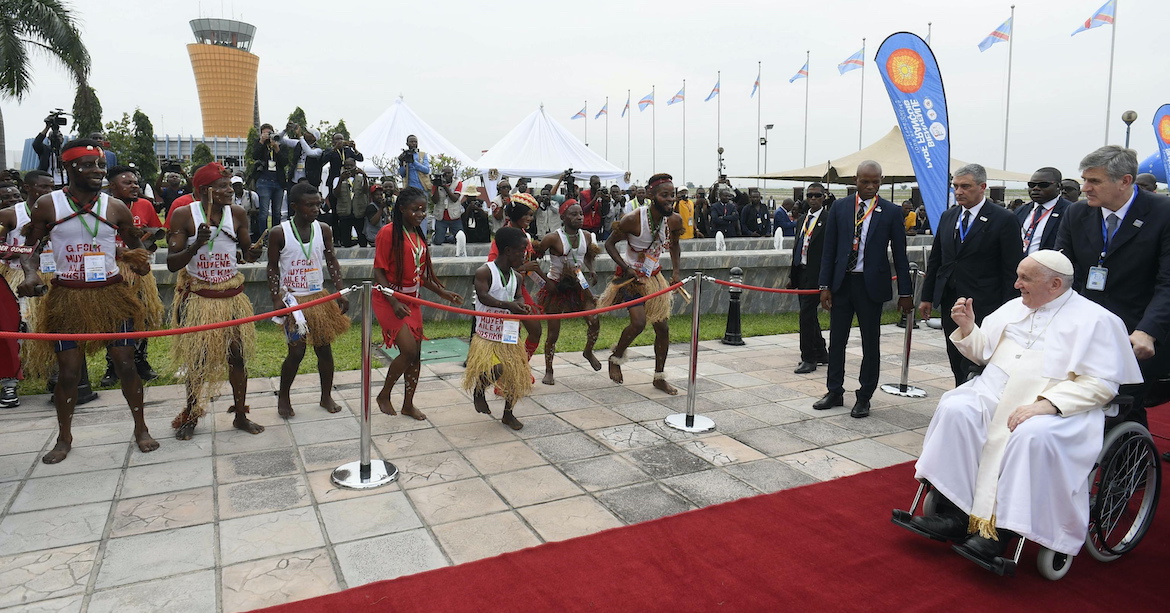 Kinshasa (Congo, The Democratic Republic Of The), 31/01/2023.- A handout picture provided by the Vatican Media shows Pope Francis arriving at N'djili airport in Kinshasa, Congo, 31 January 2023. Pope Francis heads to Democratic Republic of Congo and South Sudan, delivering a message of peace and reconciliation to the two sub-Saharan African nations plagued by conflict. The pontiff arrived to the Congolese capital Kinshasa January 31 before heading on Friday to Juba, the capital of South Sudan where he will be joined by the leaders of the Anglican Church and the Church of Scotland. (Papa) EFE/EPA/VATICAN MEDIA HANDOUT HANDOUT EDITORIAL USE ONLY/NO SALES