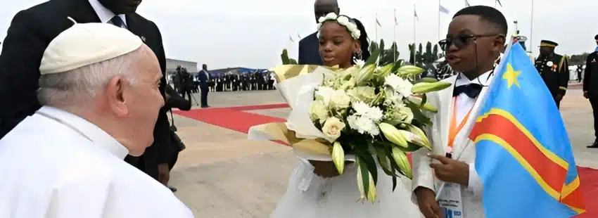 El papa Francisco ha aterrizado a las 14:35 de hoy –25 minutos antes de lo previsto– en el Aeropuerto Internacional de Kinsasa (República Democrática del Congo), donde ha tenido lugar la recepción oficial. El Pontífice inicia así su peregrinación de cuatro días por la capital del país antes de poner rumbo a Sudán del Sur, donde estará tres días acompañado por el arzobispo de Canterbury, Justin Welby, y el moderador de la Asamblea General de la Iglesia Presbiteriana de Escocia, Iain Greenshields.