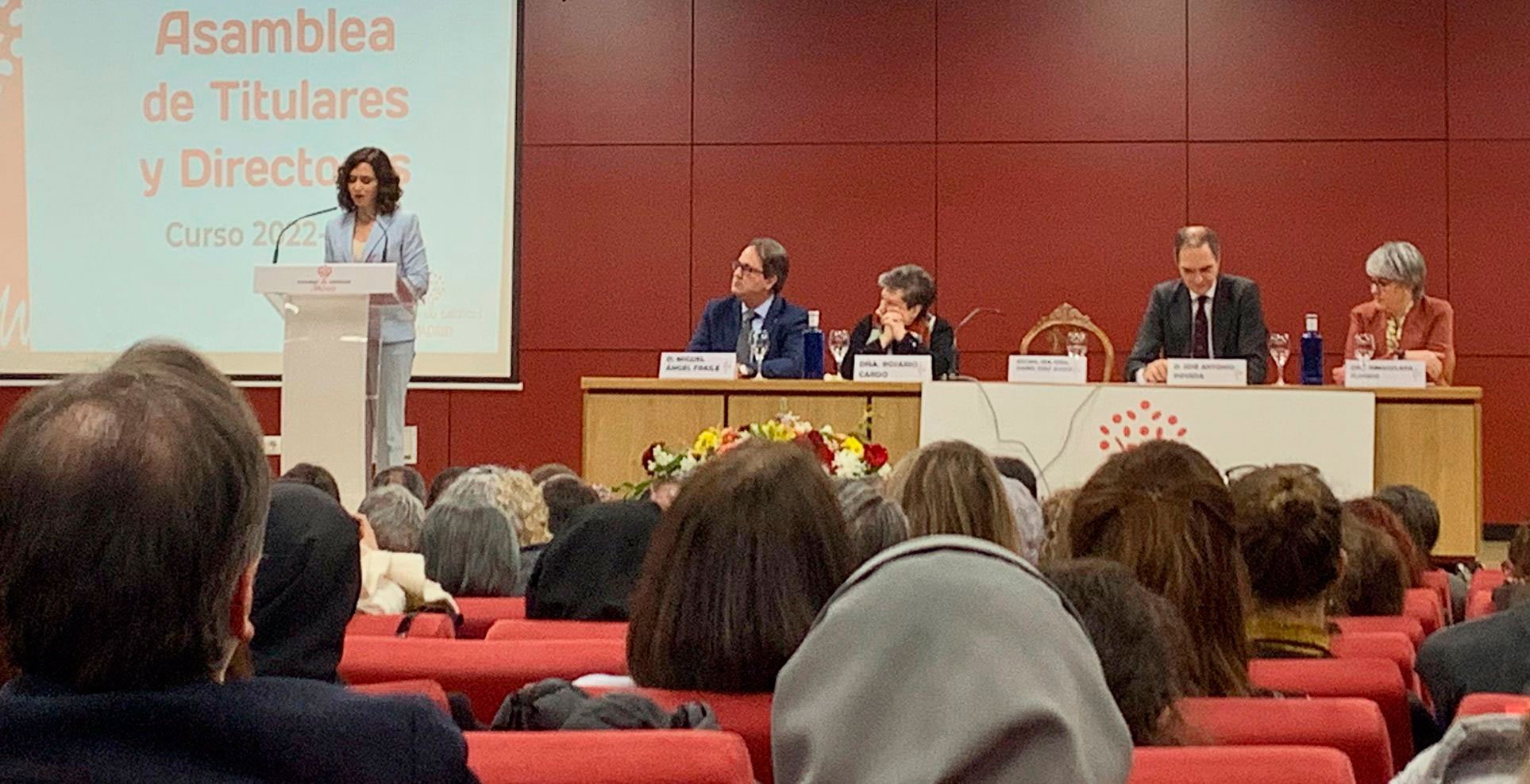 La presidenta popular jugaba en casa. En su saludo a la “querida” presidenta, la consejera general de la Institución Javeriana y vicepresidenta de ECM, Rosario María Cardo Valero, ha agradecido a Ayuso por “hacernos hueco en su agenda y compartir con nosotros esta jornada de reflexión”. Asimismo, le ha dado las gracias por “situar la libertad en el eje de su discurso político”, porque “la escuela concertada requiere libertad para existir y sin ella no existiría la libertad de enseñanza”.