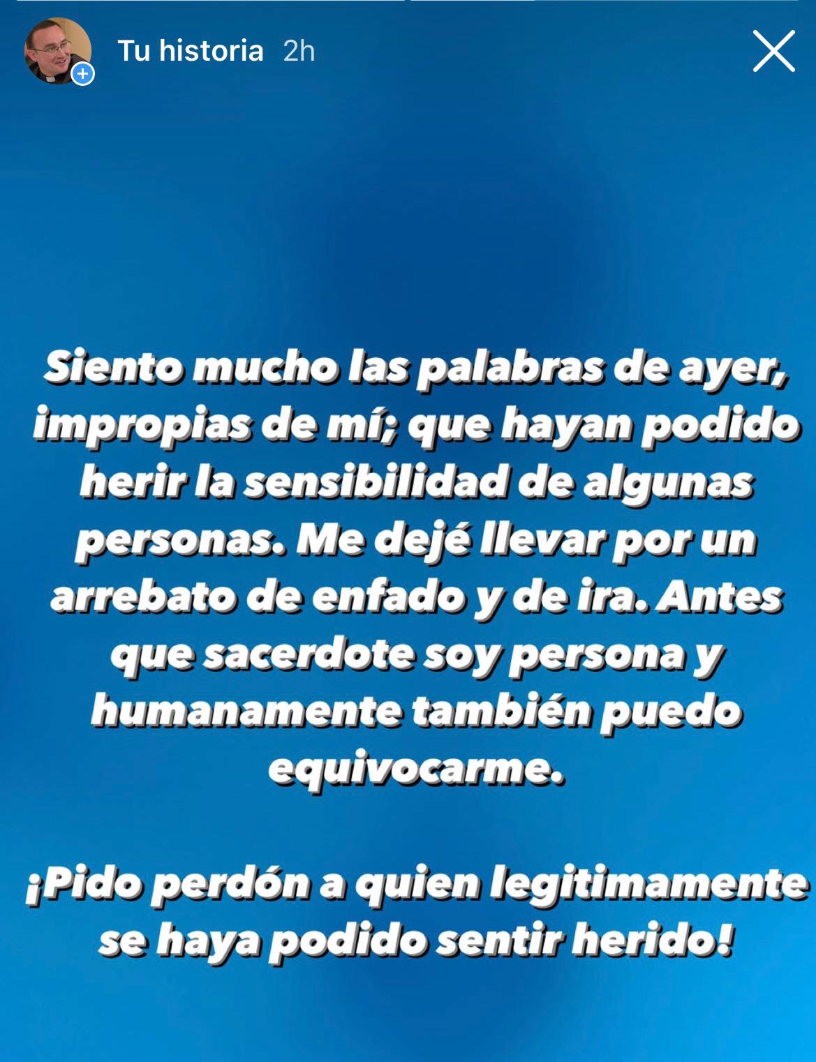 El sacerdote Héctor Gozalbo, delegado de medios de la Diócesis de Segorbe-Castellón, se retracta de los insultos que profirió a través de su cuenta de Instagram a la periodista Emma Zafón. “Reconozco que ha sido una imprudencia por mi parte, no son palabras propias ni de una persona ni de un sacerdote”, expone Gozalbo a Vida Nueva sobre el texto que difundió a través de su cuenta de Instagram el pasado 14 de febrero en el que calificaba, entre otras cosas, a Zafón de “desequilibrada mental”.