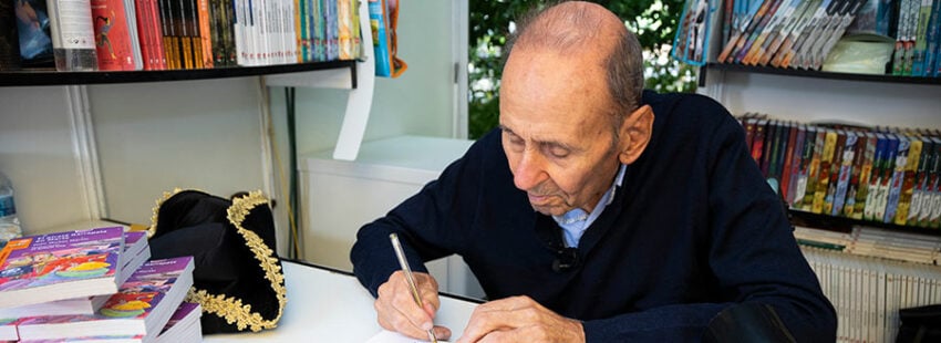 Con su inseparable garfio acudía año tras año a firmar ejemplares a la Feria del Libro de Madrid. La más emocionante, la de 2021, la del reencuentro con sus lectores tras el confinamiento, donde acabó firmando en la caseta de SM tras el cierre de la jornada, compartiendo risas y anécdotas y sintiendo al afecto de inmumerables personas del sector de la edición, librerías, maestras, profesores, familias y lectores, grandes y pequeños.