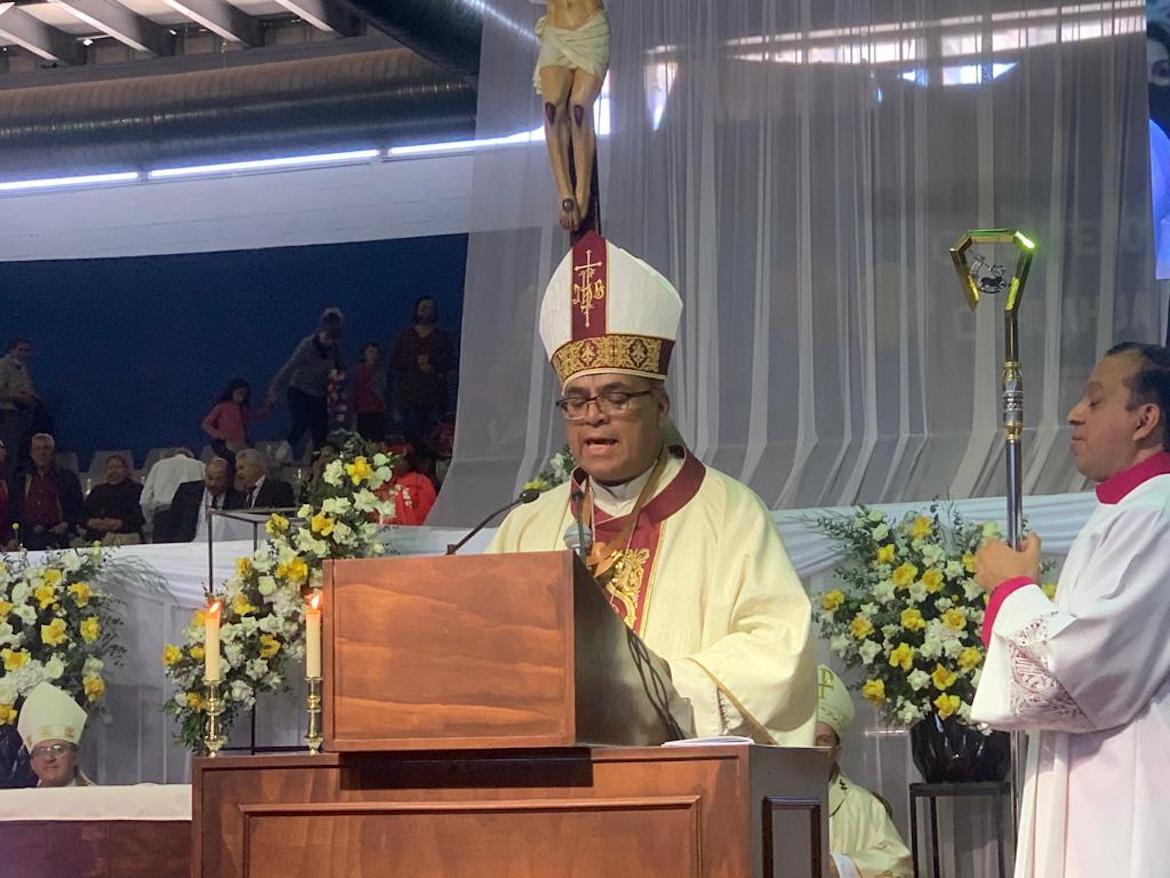 El Evangelio se leyó tanto en español como en rarámuri, dialecto hablado en la Sierra Tarahumara, en la que en una parte está asentada la diócesis de Cuauhtémoc-Madera.