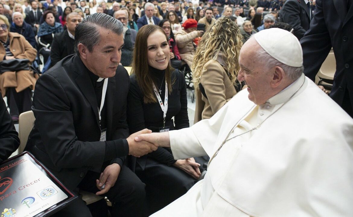 En el encuentro con el Papa estuvieron el presbítero Raúl Sánchez Alonso, fundador de la Universidad Sacro Cuore; la presidenta municipal de Isla Mujeres, Atenea Gómez Ricalde y miembros de la Fundación América Unida.