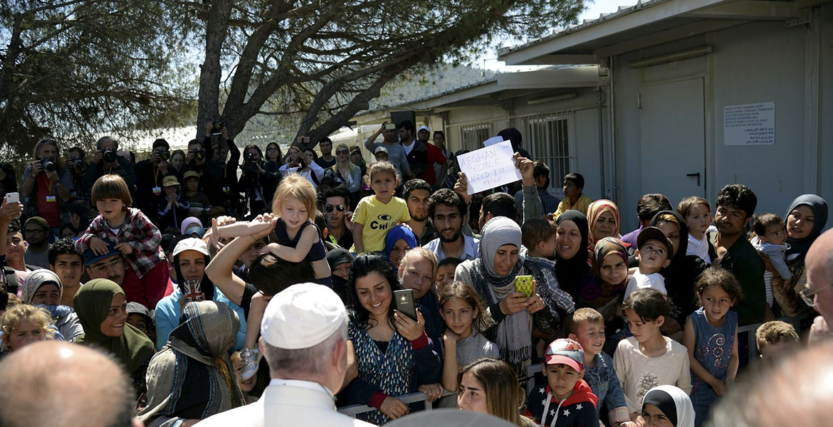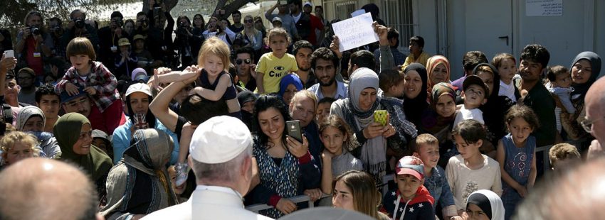 Ante miles de refugiados a las puertas del centro de detención de Moria dijo: “No estáis solos. ¡No perdáis la esperanza! Hemos venido para atraer la atención del mundo ante esta grave crisis humanitaria, para implorar una solución”.