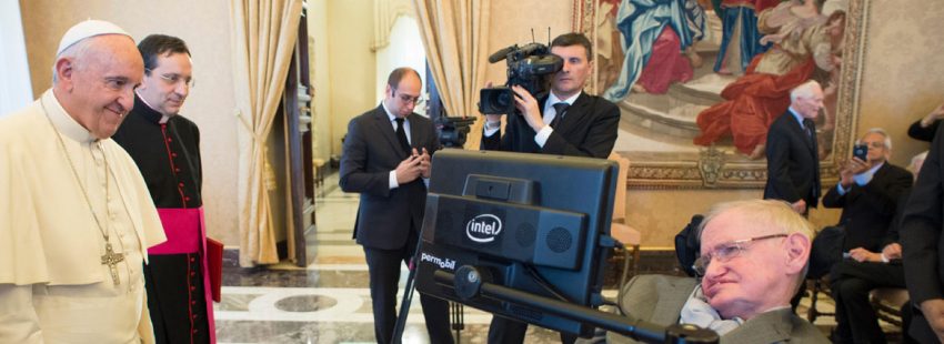 En su saludo personal a Hawking, bendijo al científico haciendo la señal de la cruz sobre su frente y, en su conversación, mostró su admiración por su sistema de comunicación informático.