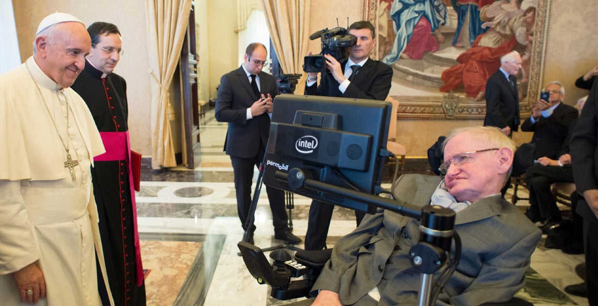 En su saludo personal a Hawking, bendijo al científico haciendo la señal de la cruz sobre su frente y, en su conversación, mostró su admiración por su sistema de comunicación informático.