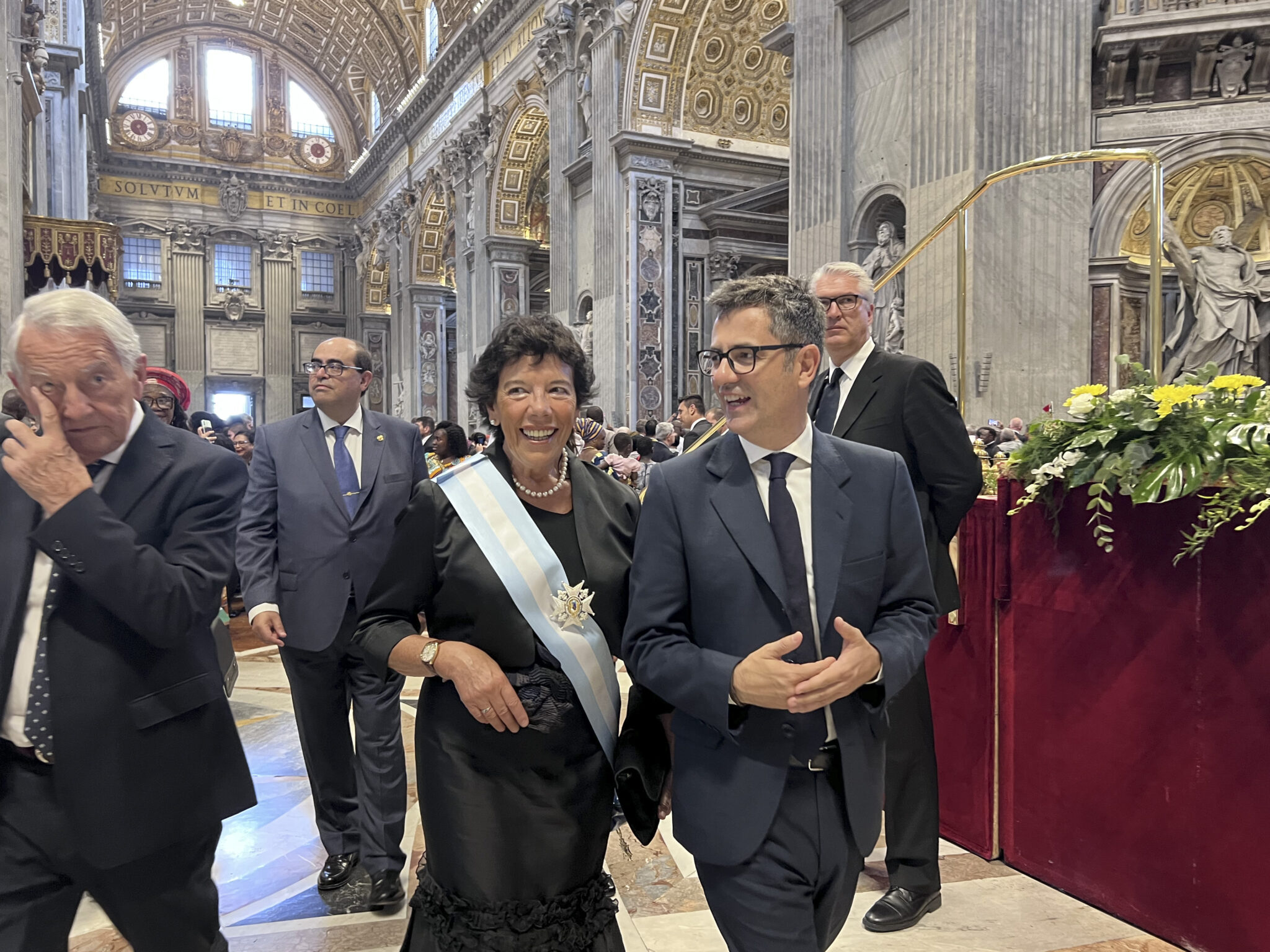 ROMA, 27/08/2022.-El ministro de la Presidencia Félix Bolaños e Isabel Celaá, embajadora de España ante la Santa Sede, asisten a la ceremonia de ordenación de los nuevos 20 cardenales, entre ellos el español Fernando Vérgez, este sábado en Roma.-EFE/ Natalia Ruiz Guillamón/Ministerio de la Presidencia***SOLO USO EDITORIAL/SOLO DISPONIBLE PARA ILUSTRAR LA NOTICIA QUE ACOMPAÑA (CRÉDITO OBLIGATORIO)***