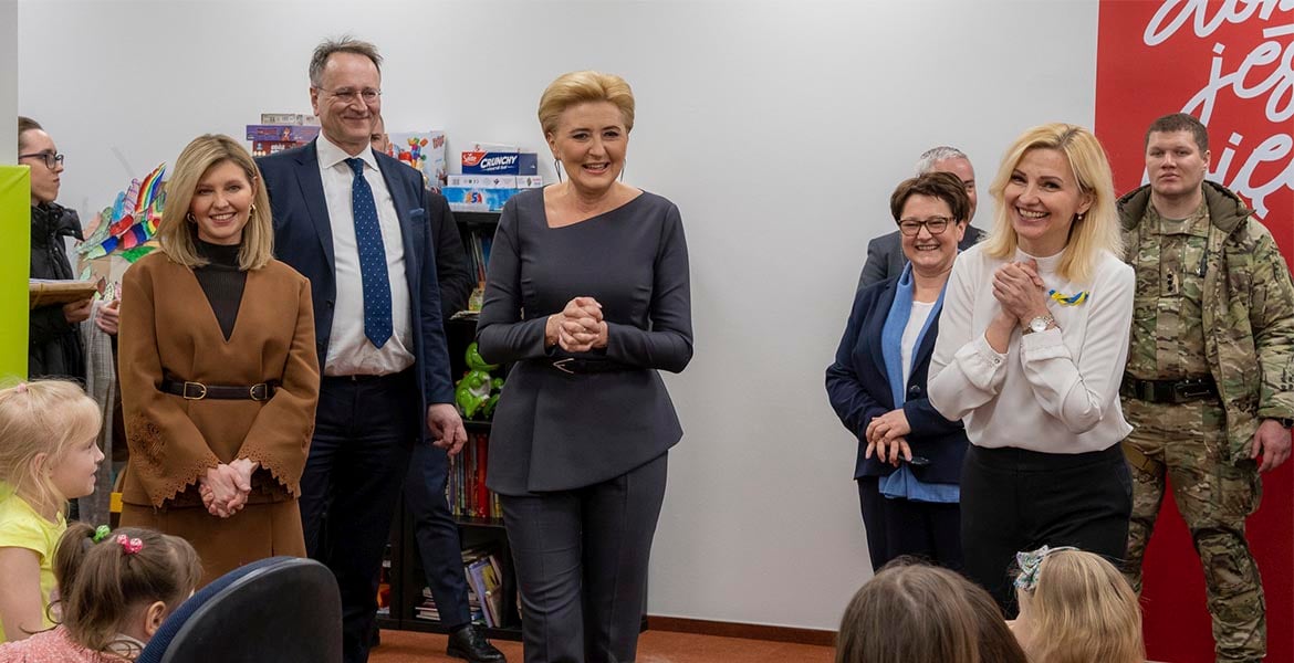 Agata Kornhauser-Duda y Olena Zelenska visitaron el Centro de Asistencia a Migrantes y Refugiados de Varsovia