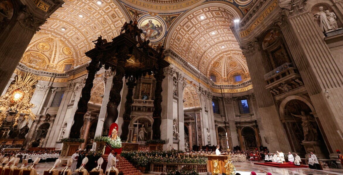 La basílica de San Pedro, repleta de fieles, durante la celebración de la Vigilia Pascual. EFE/EPA/GIUSEPPE LAMI