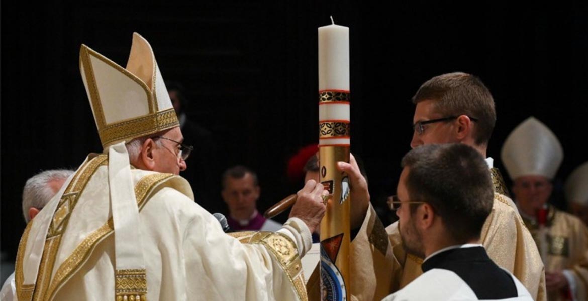 Tras la ausencia en el Vía Crucis del Viernes Santo en el Coliseo, el papa Francisco reapareció para la Vigilia Pascual. Una celebración en la que se han adaptado algunos momentos a la dificultad de movimiento del pontífice. Además, para esta ocasión el Papa, que ha presidido con capa pluvial, ha estrenado este ornamento regalado por una taller de Cáritas de la diócesis de Asti –tierra de la que provienen los antepasados de Bergoglio–. La misa comenzó en penumbra al comienzo de la nave de la basílica de San Pedro con el encendido del cirio en torno a una pequeña hoguera, aunque se ha mantenido el horario ‘pandémico’, iniciando la vigilia a las 19:30 h.