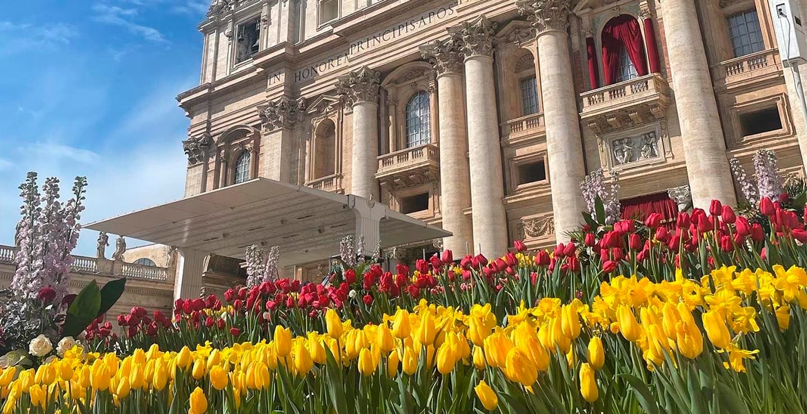 El papa Francisco ha celebrado la misa del día de la resurrección de Cristo rodeado de un inmenso jardín formado por más de 38.000 flores y plantas procedentes de los Países Bajos –y bendecidas por el obispo de Rotterdam– entre tulipanes, narcisos, jacintos, crisantemos, rosas o azaleas. Un trabajo que dirige Piet van Burg con un grupo de voluntarios. Con la supervisión del Departamento de Jardines y Medio Ambiente de la Dirección de Infraestructuras y Servicios de la Gobernación, en el diseño ha incluido una inaudita celosía. Las diferentes flores se han comenzado a colocar a partir del Sábado Santo para que muchas de ellas florezcan en la misma noche de Pascua como símbolo de la Vida Nueva de Cristo.