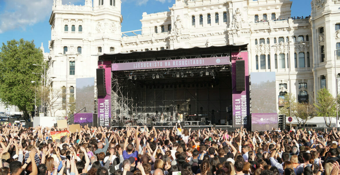 Más de 60.000 personas participaron ayer en la Fiesta de la Resurrección, el primer concierto de Pascua organizado y financiado por la Asociación Católica de Propagandistas que se celebró en la Plaza de Cibeles de Madrid. Casi tres horas de música en vivo sin incidente alguno en una tarde más que apacible en la capital.