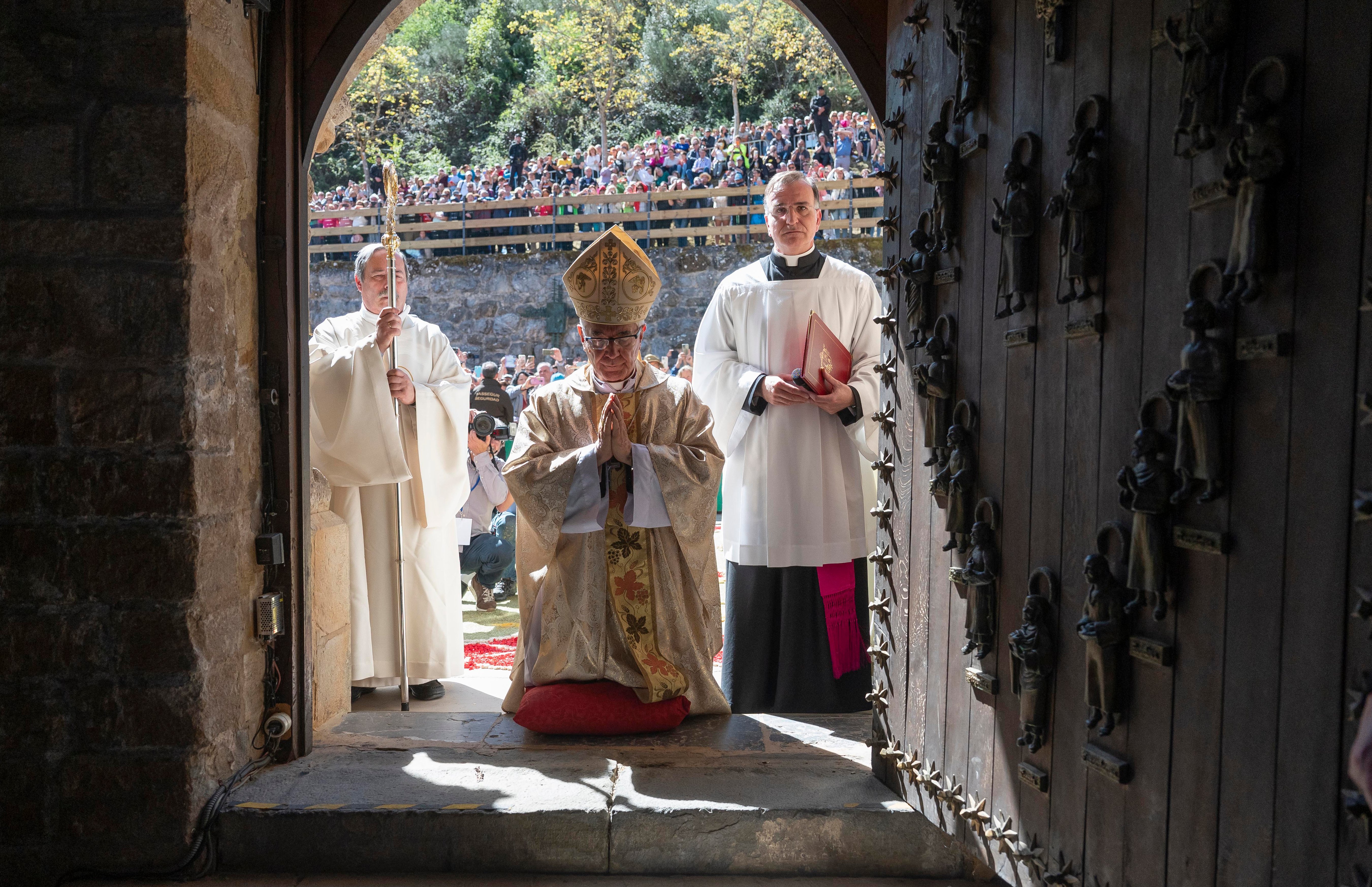 Presidió la celebración el obispo de Santander, Manuel Sánchez Monge, quien rezó así: “¡Peregrinos, la Puerta del Perdón se nos abre! ¡Caminemos a contemplar el amor de Dios, expresado en el Santo Leño de la Cruz de Cristo! ¡Que, marcados por la Cruz del Señor, construyamos un mundo de amor y justicia, mientras peregrinamos a la casa del Padre!”.