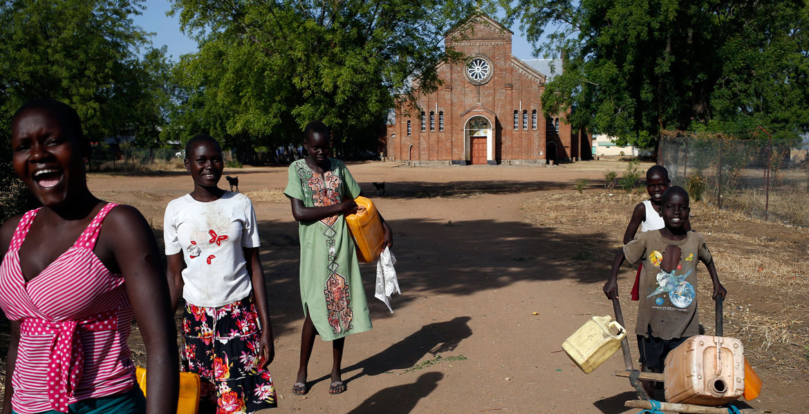 Familias en Sudán del Sur, a las puertas de una iglesia