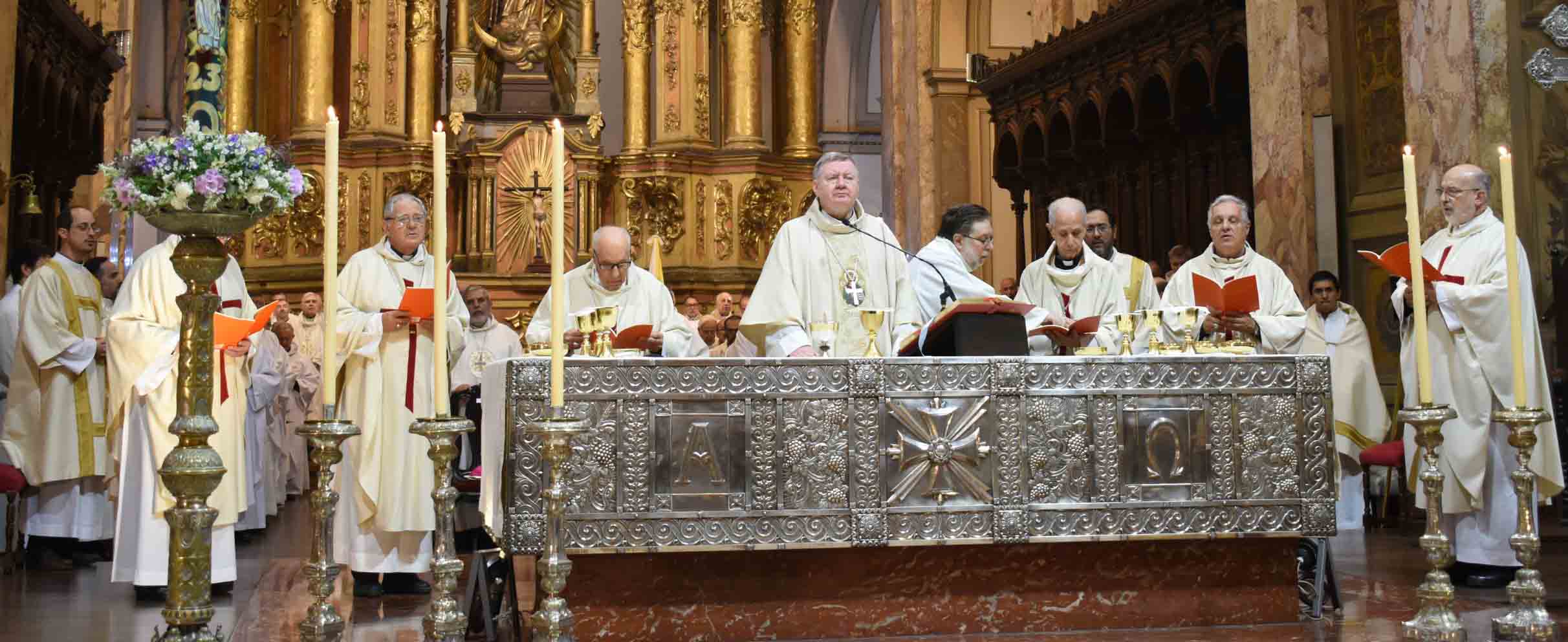 La Eucaristía fue presidida por el Nuncio Apostólico, Miroslaw Adamczyk, por el cardenal primado, Mario Poli, el cardenal Héctor Luis Villalba, y los miembros de la Comisión Ejecutiva de la CEA. Fue concelebrada por todos los obispos titulares, auxiliares, prelados, eméritos y administradores diocesanos que participan de las jornadas que se están desarrollando en el Cenáculo, en la diócesis de Zárate-Campana. Agradeció a todos los presentes, incluidos algunos funcionarios nacionales y locales, y les presentó su respeto y expresiones de estima.