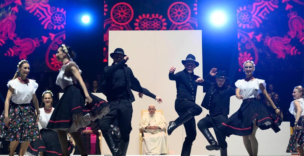 El acto principal del papa Francisco en Hungría en la tarde de este 29 de abril ha sido el encuentro con los jóvenes. Un multitudinario momento en el Papp László Budapest Sportaréna con sabor a fiesta. Allí el pontífice ha sido recibido por el obispo responsable de la Pastoral Juvenil, Ferenc Palánki, tras dar unas vueltas en un carrito de minigolf al estadio. En la celebración compartieron su testimonio dos jóvenes.