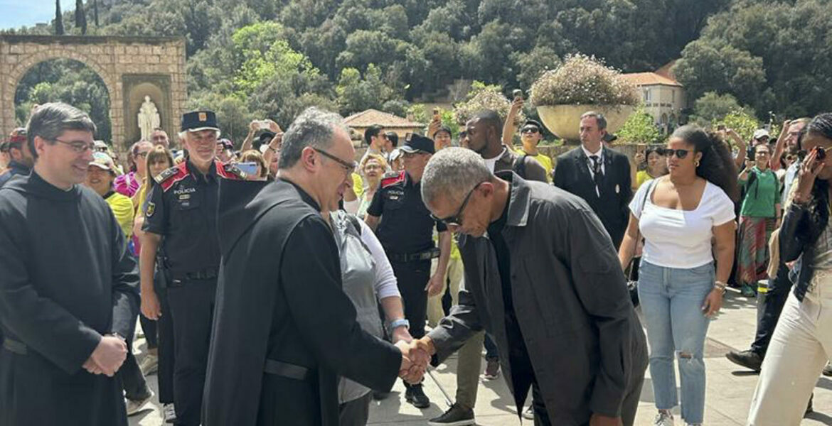El sábado llegó el turno del monasterio de Montserrat. Barack y Michelle Obama, y Steven Spielberg y su esposa, Kate Capshaw, llegaron a la zona poco antes de las 12 del mediodía entre un gran cordón de seguridad y una gran expectación de los visitantes del enclave monástico catalán. El grupo fue recibido por el abad de Montserrat, Manel Gasch, y el prior, Bernat Juliol, antes de acceder al templo.
