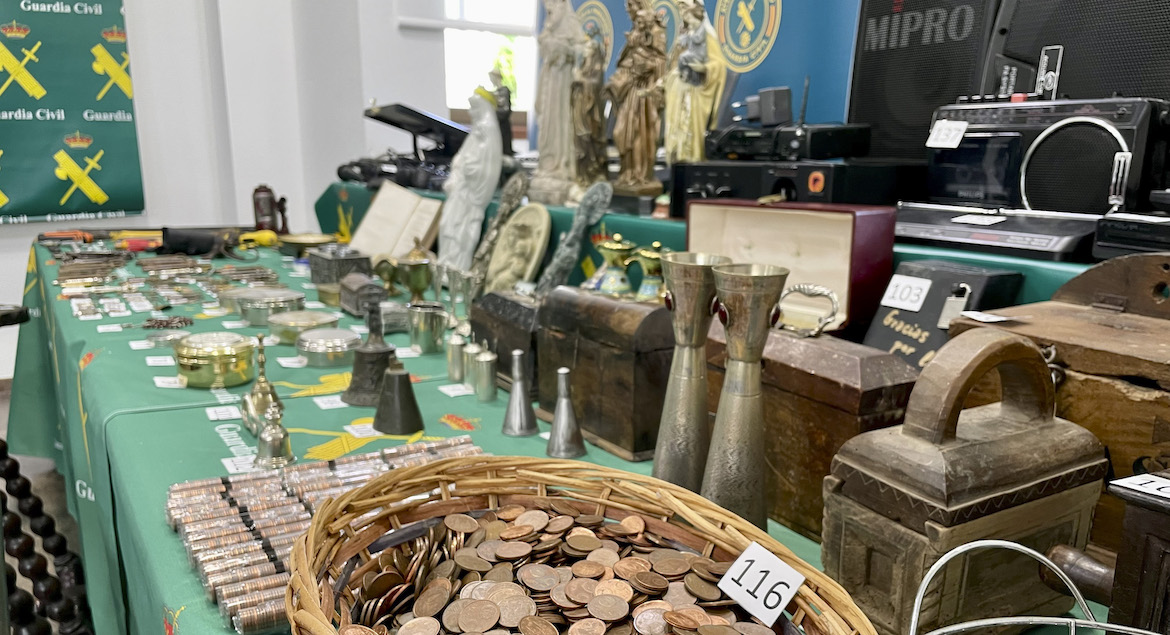GRAF5513. SANTANDER, 08/05/2023.- Objetos encontrados en el domicilio de una pareja cántabra de 41 y 45 años, detenida por el robo de al menos 93 iglesias en Cantabria, Asturias y Palencia, en las que se llevaban el dinero de la recaudación y diversos objetos. La Guardia Civil ha detenido a una pareja, un hombre y una mujer, a los que se les imputan al menos 93 robos en iglesias de 82 localidades, la mayoría en Cantabria pero también en Asturias y Palencia en la operación "Sanandrés". La pareja, de 41 y 45 años, residente en Villacarriedo (Cantabria), buscaba templos alejados de núcleos urbanos y usaba hasta cuatro vehículos diferentes para eludir la acción de la Guardia Civil.- EFE/Pablo Ayerbe