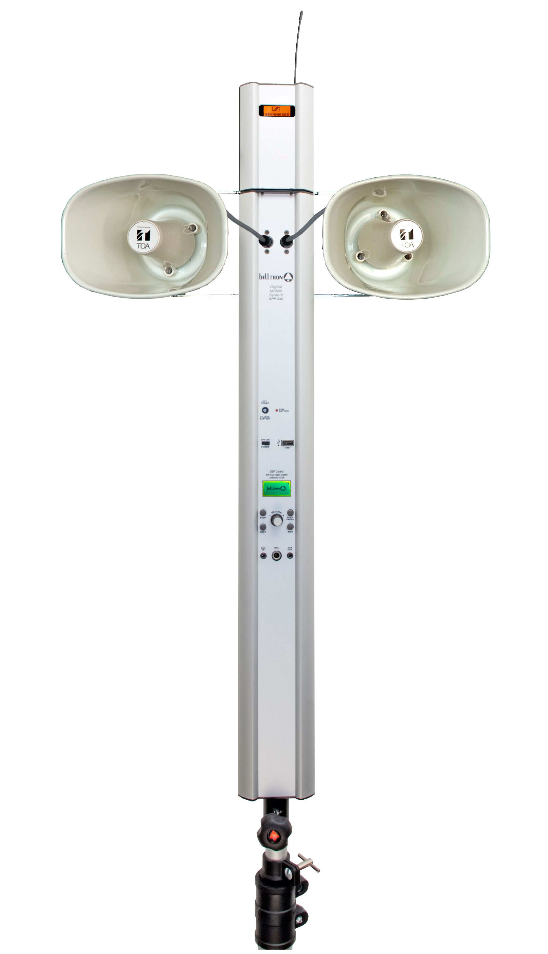 Los altavoces de audio para exteriores Belltron se utilizan para amplificar el sonido en un ambiente exterior. El sonido alcanza un rango amplio con una dispersión homogénea. Gracias a su potencia variable, según el modelo, el sonido puede alcanzar distancias considerables, llamando a los feligreses a misa y a la oración.