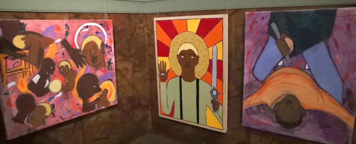 La muestra, ya retirada, está compuesta por tres pinturas, colgadas junto a un altar lateral en honor a Santa Inés, que representan “el viaje espiritual queer en tres puntos importantes: sacrificio, identidad y comunión”.