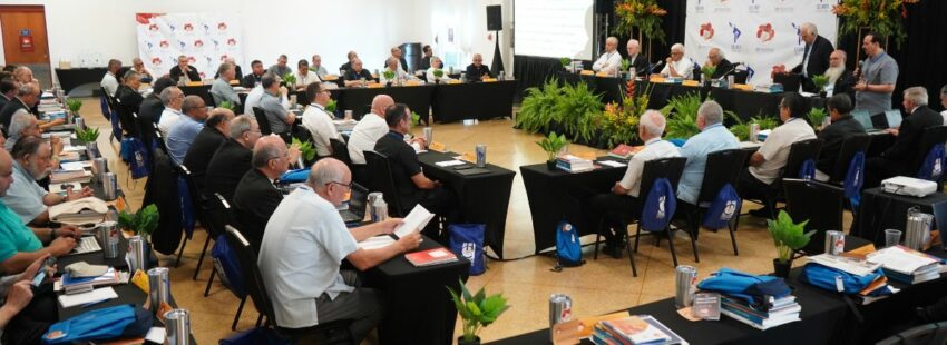 En esta primera jornada, la presidencia saliente ha presentado su informe de gestión. Señalaron que la nueva estructura se basó en “altos estándares de eficiencia, dirigida a generar procesos y no eventos, privilegiando la participación del laicado y vida consagrada” para superar de la autorreferencialidad y el clericalismo.
