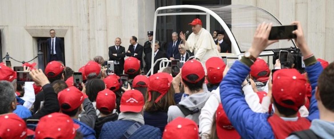 El Papa, intercalando sus palabras en un diálogo salpicado de preguntas y respuestas, deseó a los jóvenes una feliz estancia en Roma: “Conocer cosas, pasear, ir a los jardines… tantas cosas bellas. Y sobre todo, estad unidos, no os peleéis entre vosotros. ¿Sabéis quién inventó las peleas?”.