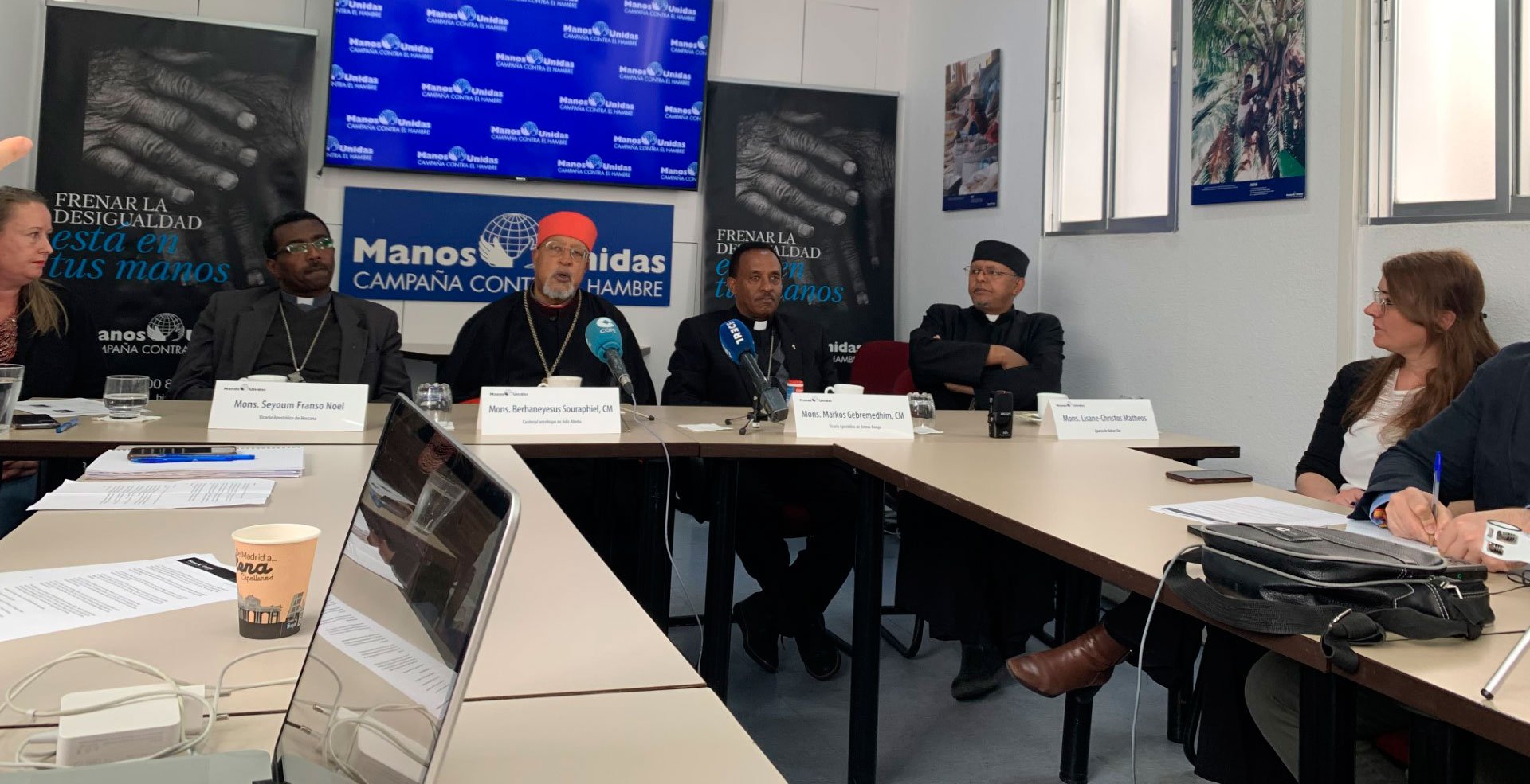 “El acuerdo de paz nos ha dado una esperanza para que haya una verdadera reconciliación”. Es la voz de Markos Gebremedhin, CM, vicario apostólico de Jimma-Bonga. Él es uno de los cuatro obispos de Etiopía que está de visita en España gracias a Manos Unidas. Y es que la ONGD de la Iglesia cuenta en el país del Cuerno de África con varios proyectos para ayudar a la población local, entre los que se incluyen programas de saneamiento y abastecimiento de agua, ayuda alimentaria, educación, servicios sanitarios y otros para paliar la sequía o los estragos de la guerra de Tigray.