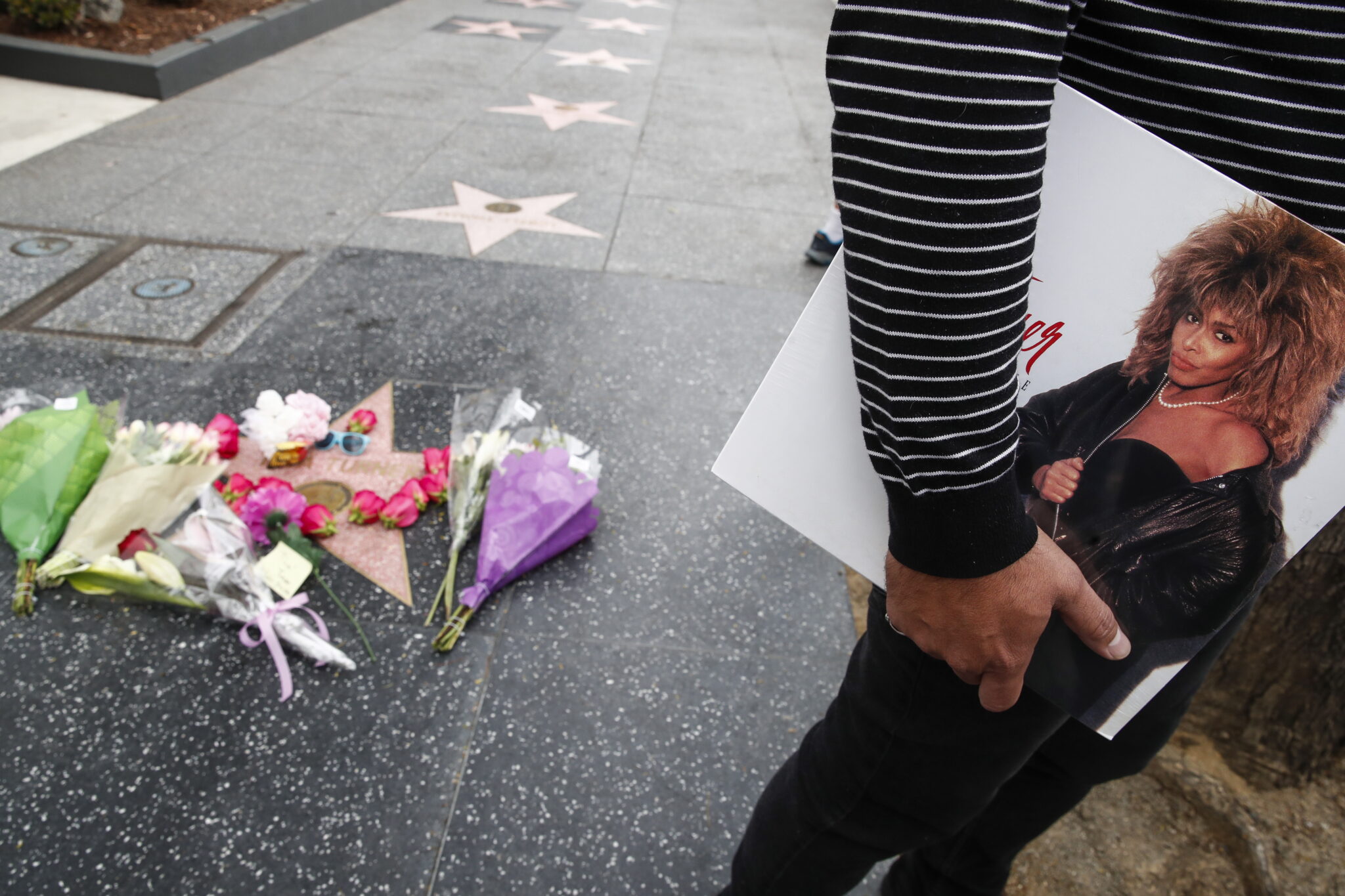 Los Angeles (United States), 24/05/2023.- Ed Banalis holds a Tina Turner record next to her Hollywood Walk of Fame Star in Los Angeles, California, USA, 24 May 2023. Turner died on 24 May after a long illness at her home in Switzerland. (Suiza, Estados Unidos) EFE/EPA/CAROLINE BREHMAN