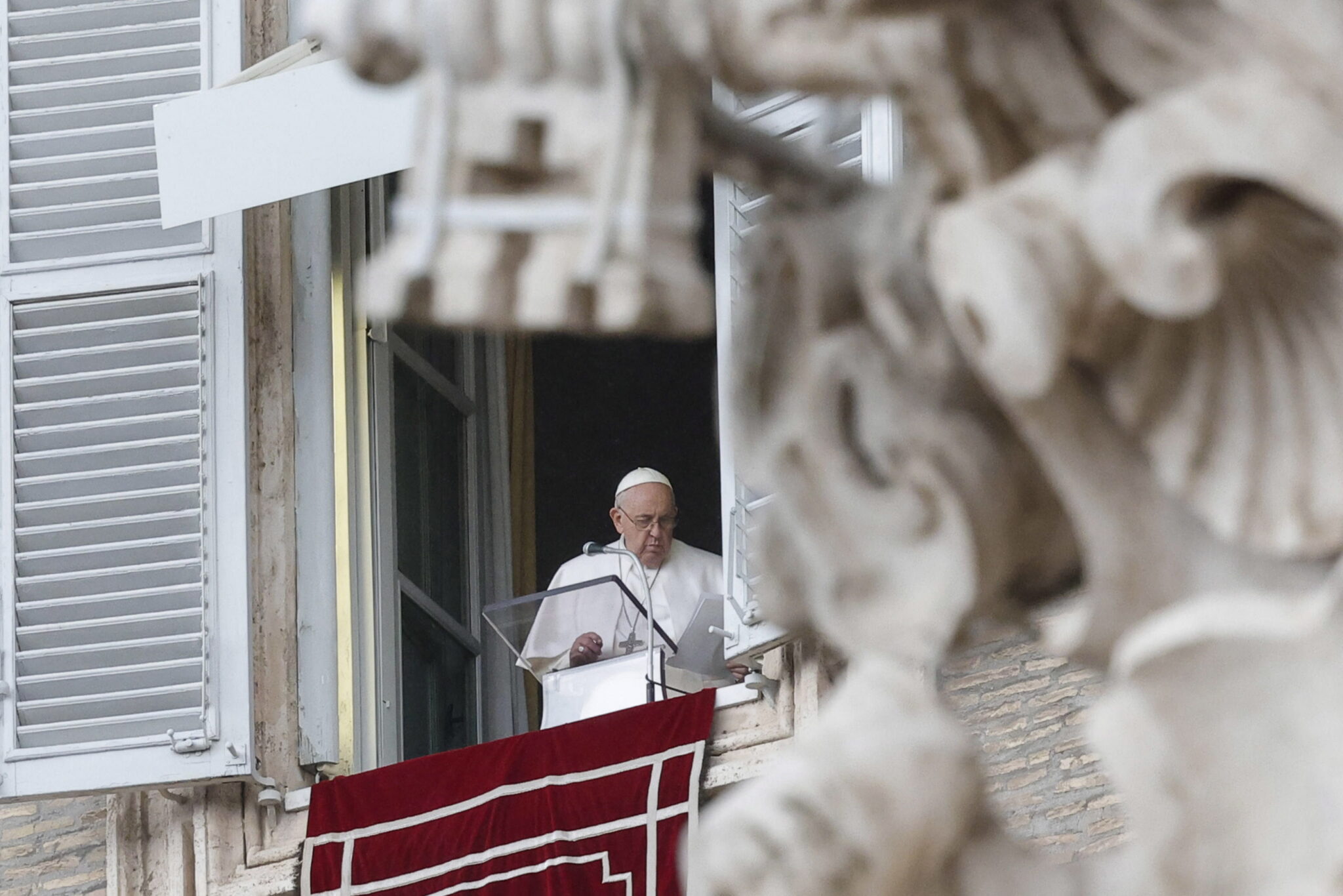 Vatican City (Vatican City State (holy See)), 26/02/2023.- Pope Francis during the Angelus prayer in St. Peter's Square, Vatican City, 26 February 2023. (Papa) EFE/EPA/GIUSEPPE LAMI