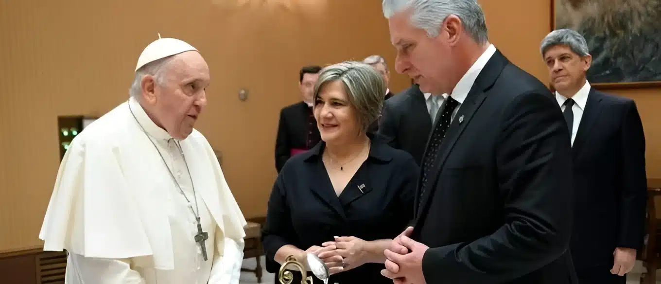 Según EFE, el encuentro entre el Papa y el presidente cubano, que ha sido el primero entre ambos en el Vaticano siendo él el máximo dirigente de su país (estuvo en el inicio de pontificado de Francisco, en 2013, en nombre de Raúl Castro), ha durado 40 minutos. Al final, Bergoglio le ha regalado una escultura de bronce con una paloma de la paz y distintos textos suyos, como el ‘Mensaje para la Paz’ de este año o el ‘Documento sobre la Fraternidad Humana’. El mandatario caribeño le ha correspondido con una escultura en plata, bronce y madera, titulada ‘El Lector’, y dos libros de poetas cubanos.