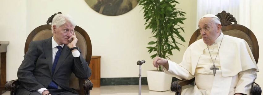 Francisco, ayudado por un bastón debido a sus problemas de rodilla, recibió personalmente al político y a su delegación y le dijo en inglés “muchas gracias por visitarme”. “¿Qué habéis hecho estos días en Roma?”, le preguntó también el Papa. El pontífice le regaló al final de la audiencia una estatuilla y le explicó que representa “nuestro trabajo que hace la paz”. Por su parte, el expresidente le entregó una bandeja con el emblema de su país. Clinton ya pasó por el Vaticano en 1994 para participar en una audiencia con el entonces papa Juan Pablo II acompañado por su esposa, Hillary Clinton.