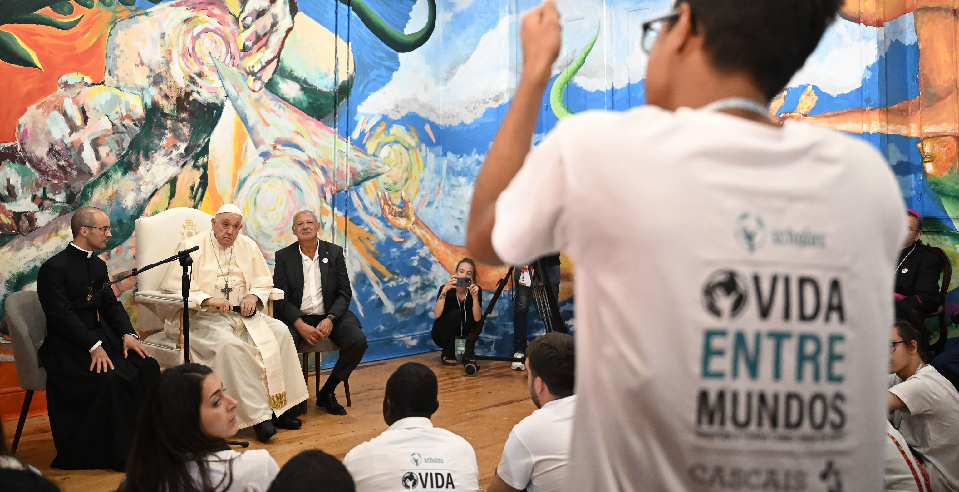 El papa Francisco se ha reunido esta mañana con los jóvenes de Scholas Occurrentes en su sede de Cascais. Pero lo más importante, es que, juntos, han pintado el futuro de la juventud con un mural de tres kilómetros que ha concluido el Pontífice con su firma.