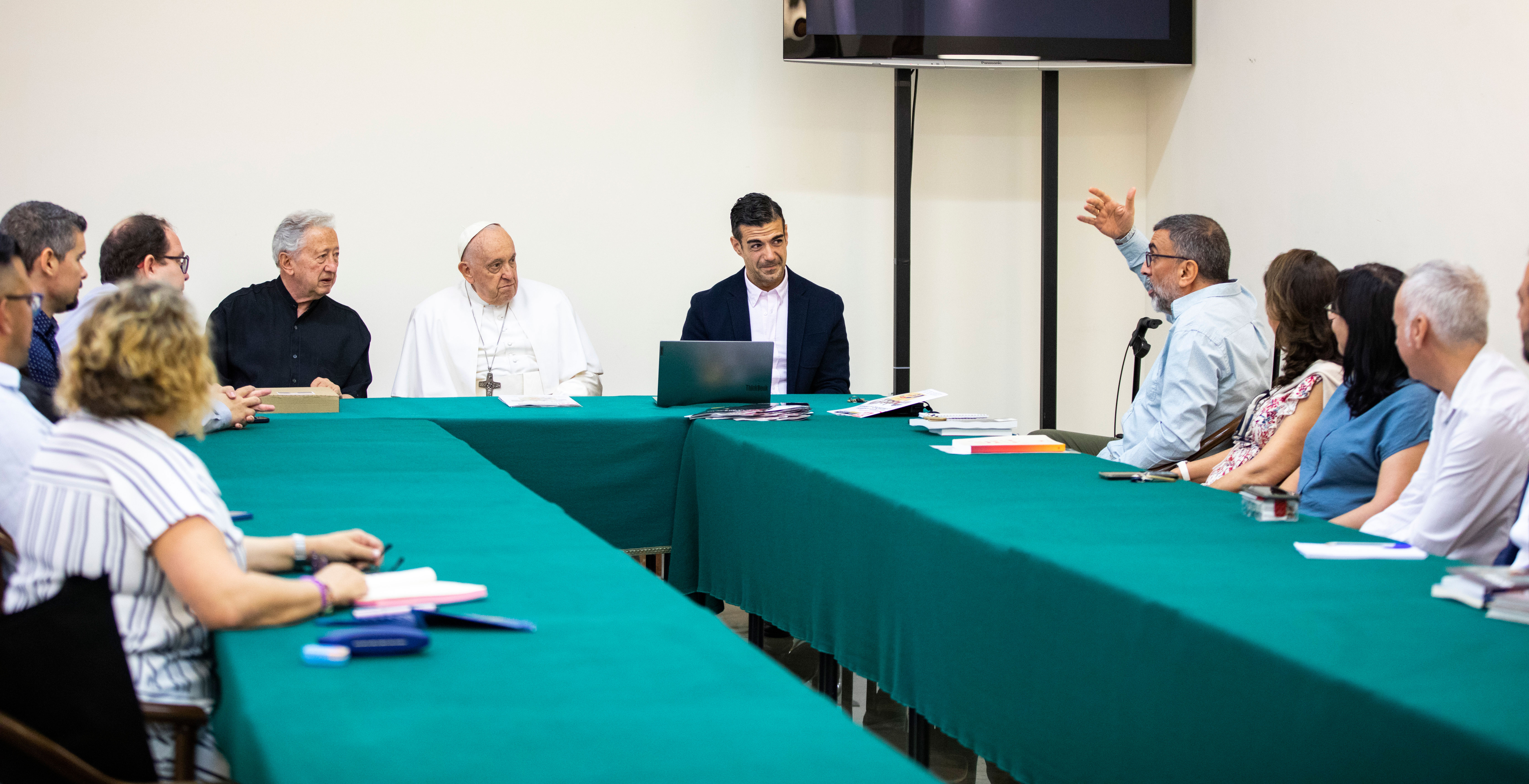 Repasamos cada una de las secciones. Al llegar a la actualidad de España, se presenta un informe de la fundación Caminando Fronteras, que denuncia que, en apenas seis meses, 951 personas se han ahogado en la Frontera Sur. El gesto de Francisco se retuerce con visible intensidad. Más que en ningún otro momento del encuentro. Y su silencio se prolonga hasta hacerse tan incómodo como interpelante. El grito de los muertos en el mar rompe el mutismo. Fin de la sesión.