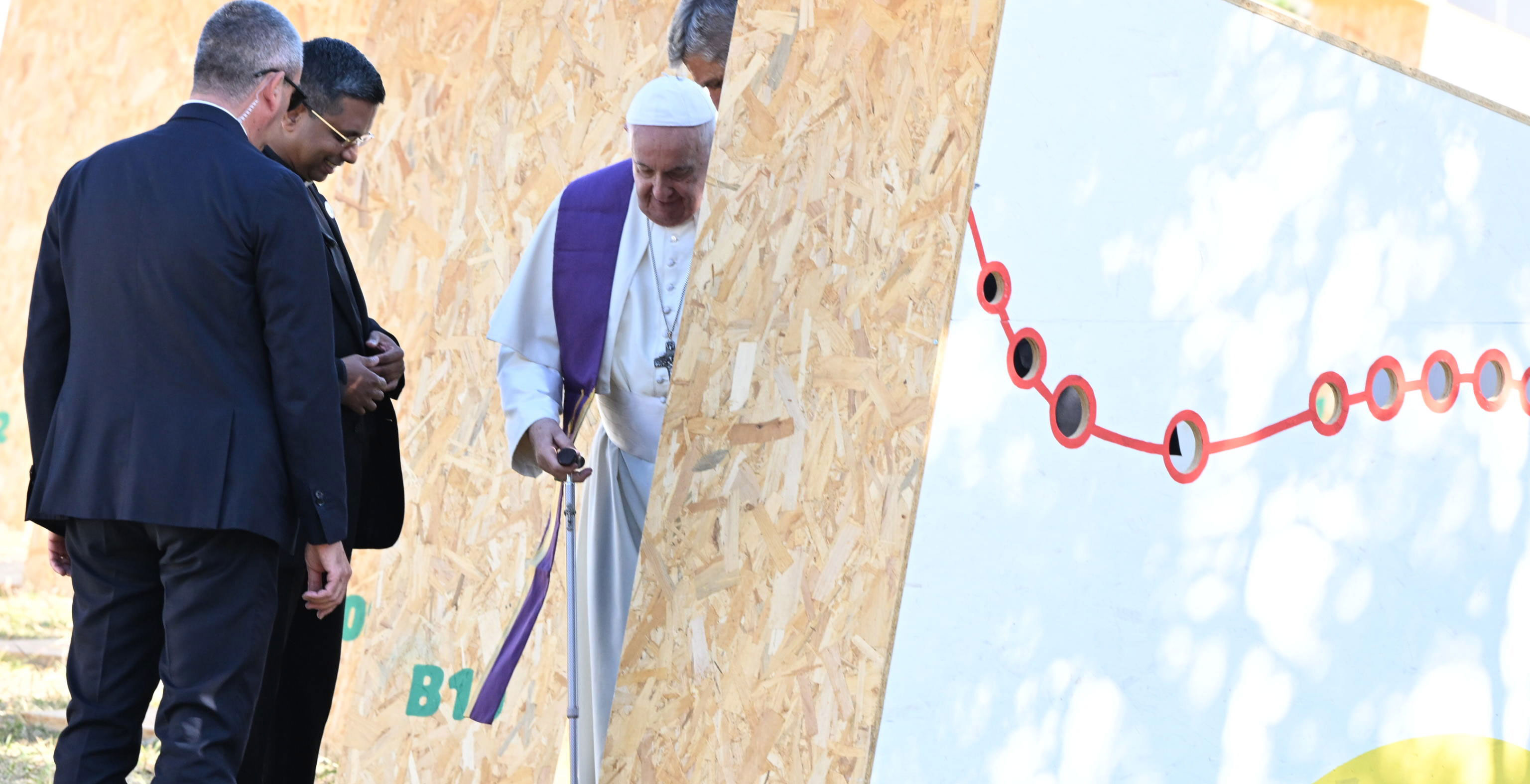 Francisco llegó este 4 de agosto a la zona verde en la que se han instalado los confesionarios creados por reclusos de diferentes prisiones de Portugal con materiales recliados. Mientras era recibido al grito de “Esta es la juventud del Papa”, Francisco se dirigió al confesionario, se puso la estola morada y se mostró dispuesto a distribuir el sacramento de la misericordia.